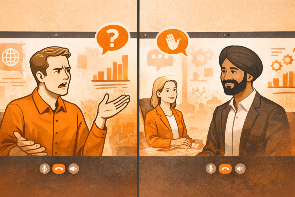 Sarah, een Nederlandse projectmanager, organiseert een meeting met haar nieuwe collega Raj uit India. Ze stelt een directe vraag: “Kun jij dit rapport volgende week vrijdag af hebben?” Raj antwoordt met een glimlach: “Ja, ik zal mijn best doen.” De vrijdag erop blijkt dat het rapport niet af is. Raj zegt: “Sorry, ik had het nog niet kunnen afronden.” Sarah is gefrustreerd: “Maar je zei toch ja?”